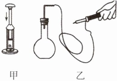 (2)如图乙所示,烧瓶内装有一些水,用瓶塞将瓶口塞紧,瓶塞通过导管与打气筒相连,用打气筒往烧瓶里打气,当瓶塞跳起时,可以看到烧瓶内出现白雾。在这个过程中,气体膨胀,对外做功,温度