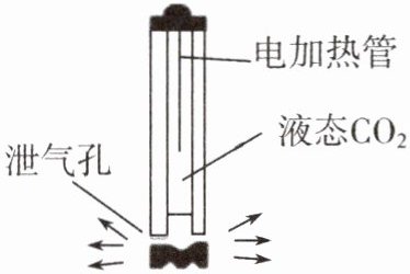 9. 二氧化碳$(CO_{2})$爆破技术是现代工程建设中非常环保的技术,起爆前高压泵将 $CO_{2}$ 压缩成高压气体,液化后输入爆破筒内。如图所示,爆破时电加热管发热,使筒内的液态 $CO_{2}$ 迅速汽化,形成的高压气体从泄气孔中喷出,实施爆破。下列说法正确的是(
