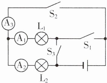 (2)当开关 $S_2$ 和 $S_3$ 闭合、$S_1$ 断开时,电流表 $A_3$ 和 $A_2$ 的示数分别为 $0.9\ A$ 和 $0.3\ A$,则电流表 $A_1$ 的示数为多少?
