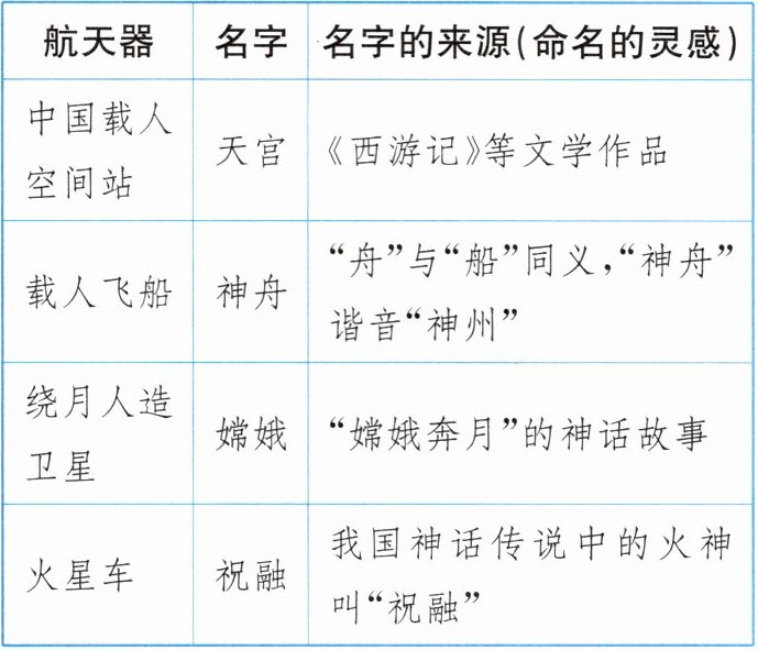 (1) 小明整理出了我国众多航天器的名字。观察下表,结合表中航天器名字的来源(命名的灵感),谈谈这样命名的意义。