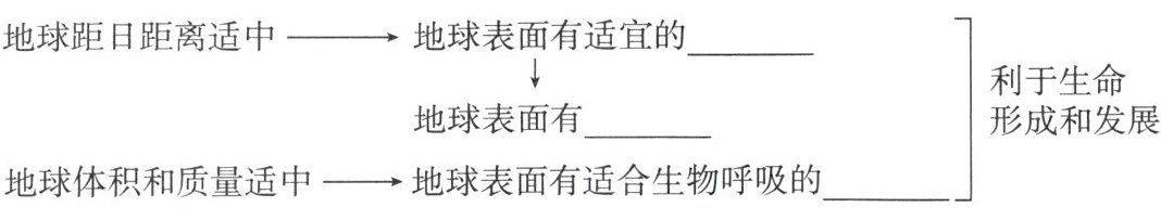 地球体积和质量适中→地球表面有适合生物呼吸的______