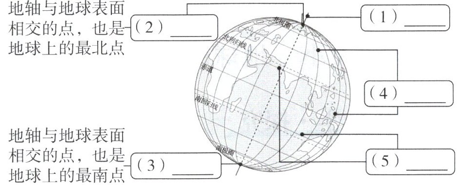 (一)读教科书图1.8和图1.9,认识地球仪的结构。