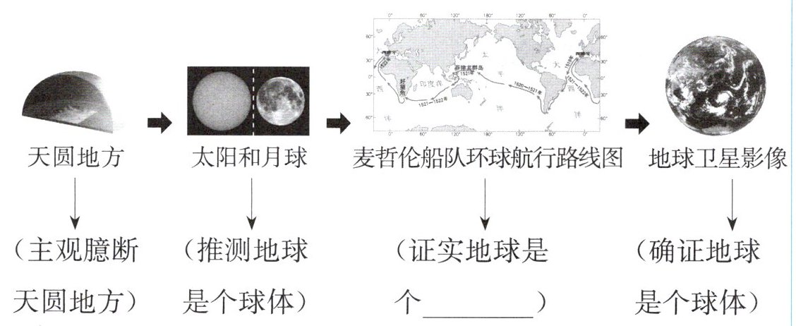 (一)读教科书图1.5,总结人类对地球形状的认识过程。