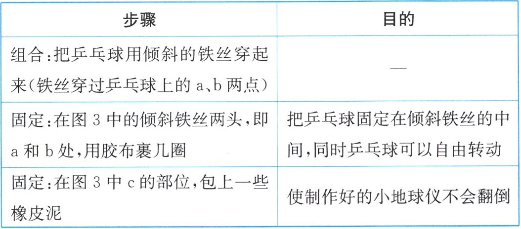 |固定:在图3中c的部位,包上一些橡皮泥|使制作好的小地球仪不会翻倒|