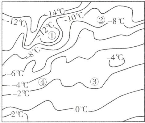 1. 图中①②③④附近气温最低的是( )