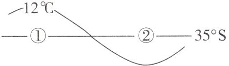7. 读某区域7月份等温线分布图,①②两地中有一地为海洋,下列判断中正确的是( )