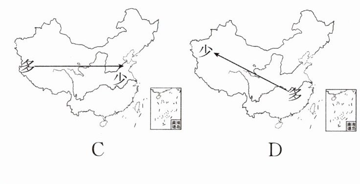 5. 下列四幅地图中,能反映我国降水空间分布规律的是(