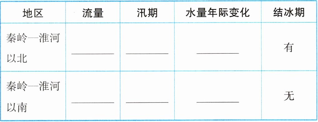 2. 归纳秦岭—淮河线南北两侧河流的差异。