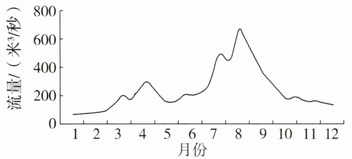 8.D 解析:解答本题的关键是从图2中读取岷江流域的气候特征,并分析气候对河流的影响。如下图所示:
