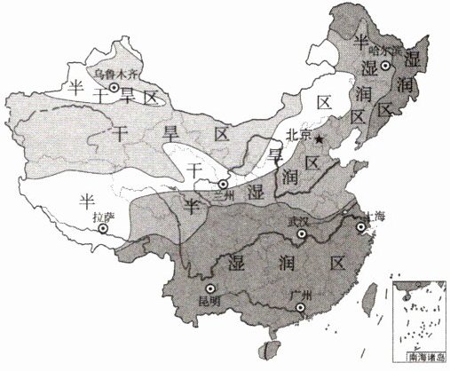 区(干湿地区),年降水量较少,蒸发量大→黄河水量较小