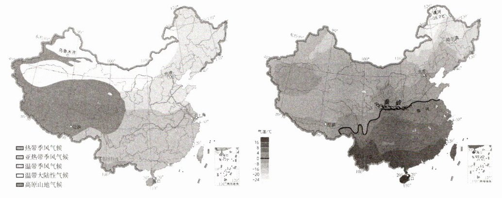 2. 温带大陆性气候 温带季风气候 大 夏