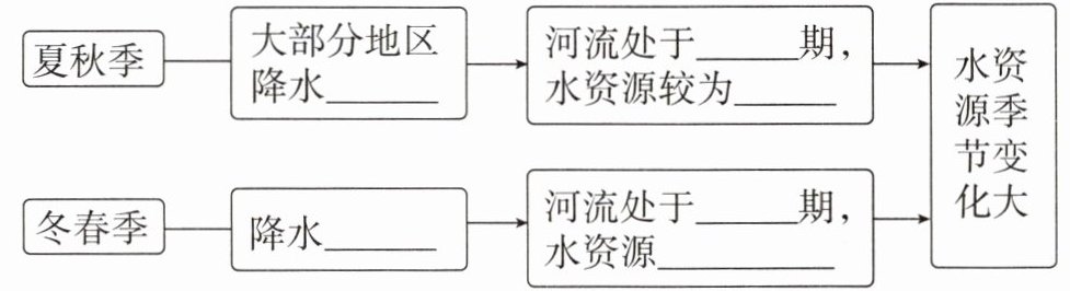 3.影响:我国降水和径流的季节、年际变化大,是造成__灾害频繁、农业生产不稳定的主要原因。
