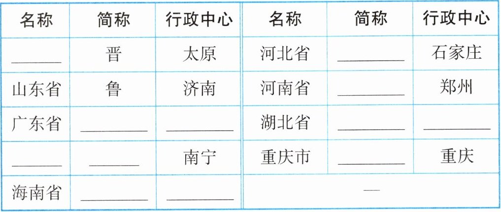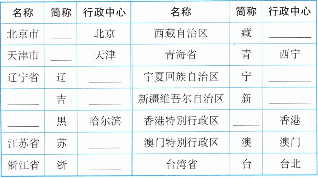 读教科书表 1.2,对照图 1.7,认识我国 34 个省级行政区的简称和行政中心。