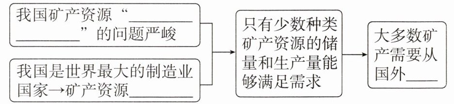 读教科书第72~73页内容,了解我国矿产资源的供需状况。
