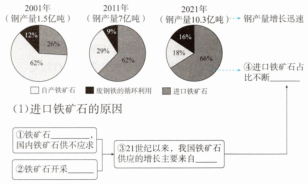 等是我国进口铁矿石的主要来源国。(3)保障措施:为避免过度依赖进口,保障我国矿产资源的供给,需要加强国内矿产资源