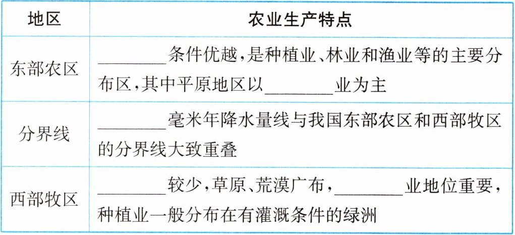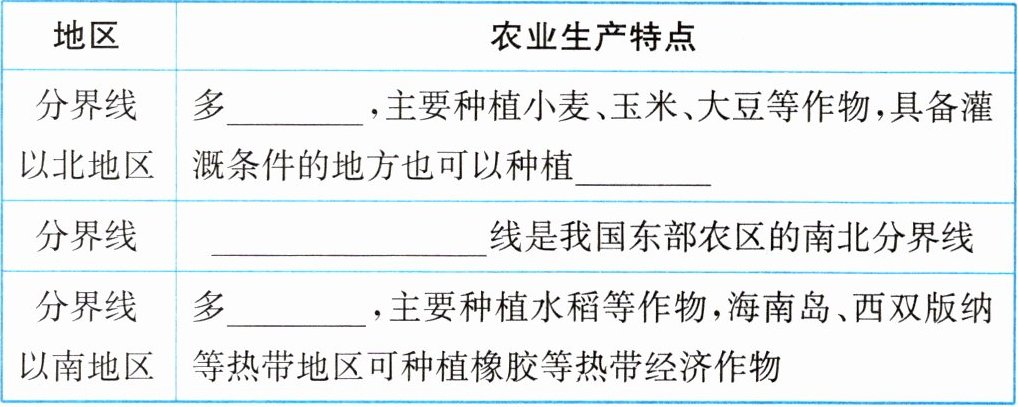 1.水热 种植 400 降水 畜牧 2.旱地 水稻 秦岭—淮河 水田 3.
