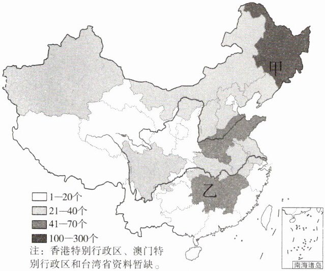 下图为我国中央储备粮直属库数量分布示意图。读图,回答 12~13 题。