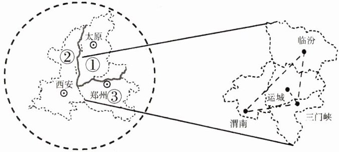 (1)黄河金三角区域所指的三个省级行政区中,①是山西省、②是陕西省、③是河南省。