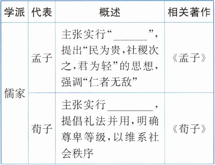 1. 儒家 2. 仁 西周 私学 3. 论语 4.