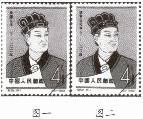 (1)1962 年我国发行了一枚纪念蔡伦的邮票,发现邮票上有一历史知识的错误,立即停止了发行,另外又出了一枚,改正了前一枚邮票上的错误。请你仔细观察以上两枚邮票,指出哪一枚是错票?是什么错误?