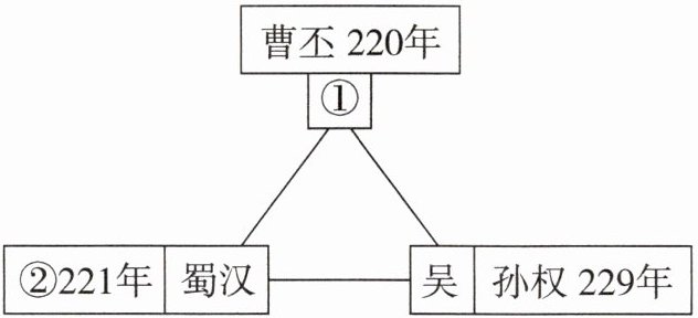 4. 下图是某同学绘制的三国鼎立示意图。其中①②处应分别填写(
