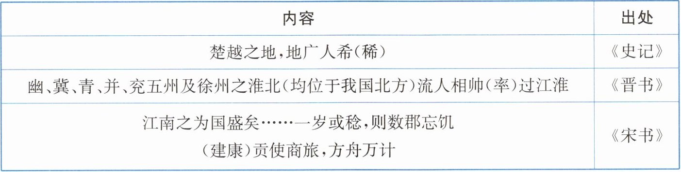 C 解析:"幽、冀、青、并、兖五州及徐州之淮北(均位于我国北方)流人相帅(率)过江淮"反映了北方人口南迁;"江南之为国盛矣……一岁或稔,则数郡忘饥"说明江南地区得到开发,C项正确;题干材料未涉及政权建设、技术发明、文化交流,排除A、B、D三项。