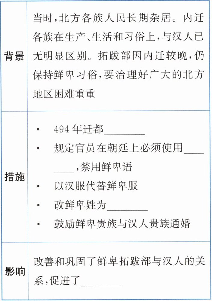 1.鲜卑 2.北魏 3.洛阳 汉语 汉姓 民族交融