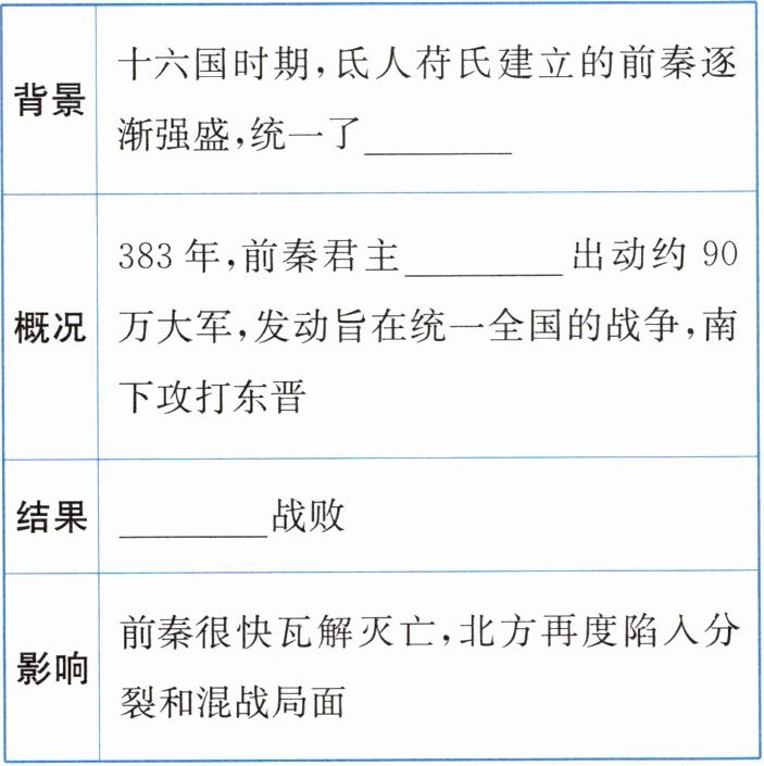 1.成汉 2.北方 苻坚 前秦