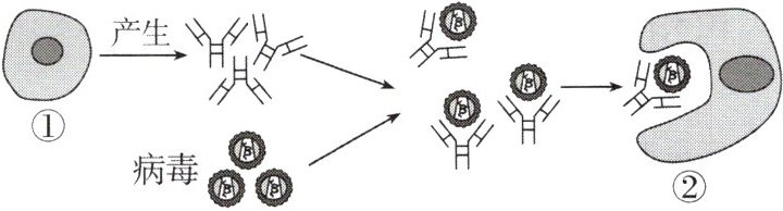 C 解析:结合题图可知,细胞①是淋巴细胞,其产生的抗体只针对特定的病原体或异物起作用,产生的免疫属于特异性免疫;题图显示细胞②正在吞噬与抗体结合的病毒,说明细胞②起吞噬作用;人体的第三道防线主要由免疫器官和免疫细胞组成,具有产生抗体、清除病原体的功能,故细胞①属于人体的第三道防线。