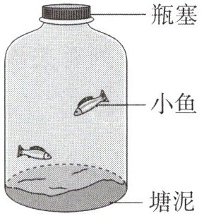 1. 同学们在老师的指导下利用带瓶塞的无色透明玻璃瓶、塘泥、池塘水、小鱼、金鱼藻等材料,开展生态瓶养鱼实践活动。请回答下列问题。