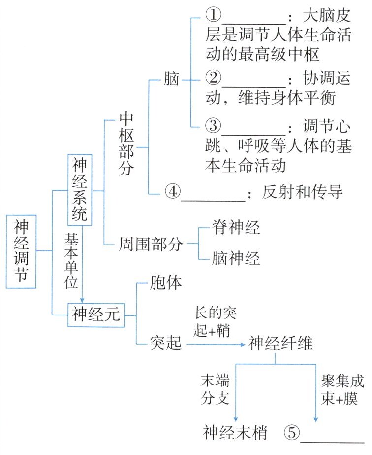 1.神经细胞 2.细胞核 胞体 突起 神经末梢 3.胞体和突起