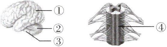 C 解析:①大脑表面的大脑皮层是调节人体生命活动的最高级中枢;②是小脑,③脑干下部与脊髓相连;④脊髓是脑与躯干、内脏的联系通路;脑和④脊髓构成神经系统的中枢部分,脑包括大脑、小脑、脑干,因此①②③④构成了神经系统的中枢部分。
