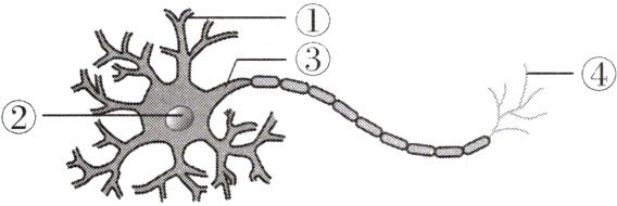 (1)D 解析:由题图可知,①是树突,能接收信息,②是神经元的细胞核;神经纤维由③长的突起与鞘组成;神经纤维聚集成束,外面包有膜,构成一条神经,④是神经末梢。