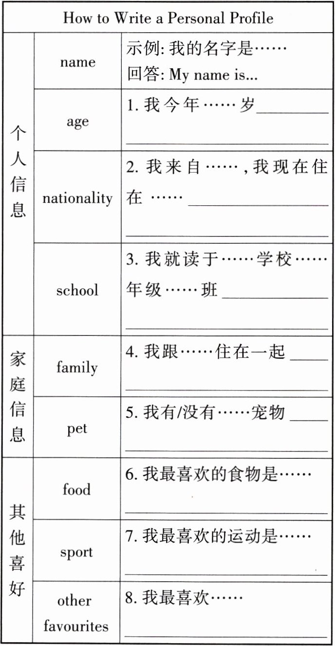| 个人信息 | name | 示例: 我的名字是……回答: My name is... |