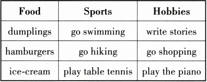 In terms of sports, I enjoy going swimming, especially in summer. It makes me feel cool and relaxed. I also like going hiking on weekends. It's a great way to get close to nature. And sometimes, I play table tennis with my friends.