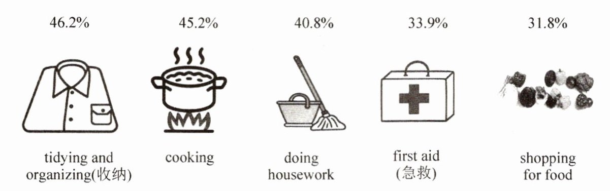 )2. Which life skill is the most popular according to the survey?A. Cooking.