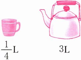 $3 ÷ \frac{1}{4}=12($杯)