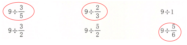 $9÷ \frac{3}{2}$ $9÷ \frac{5}{2}$ $9÷ \frac{5}{6}$
