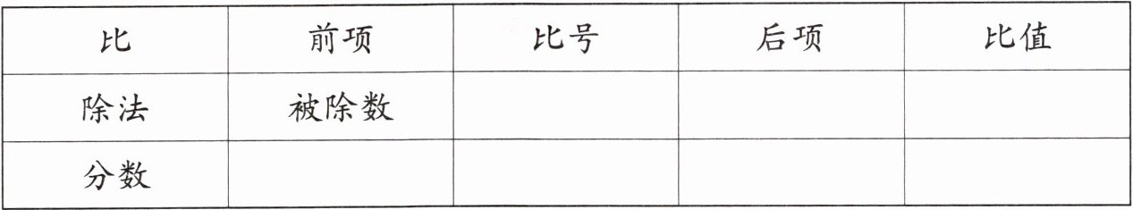 (4)一个比的前项是$\frac{2}{5}$,后项是 3,比值是$\frac{2}{15}$。(