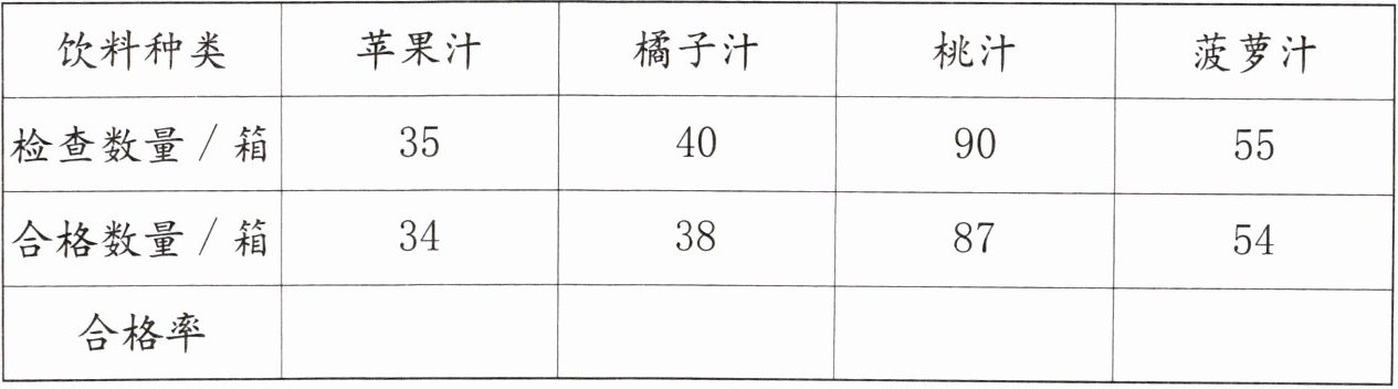 3. 质量检验部门对某城市饮料质量进行抽查,结果如下表,请补全表格。