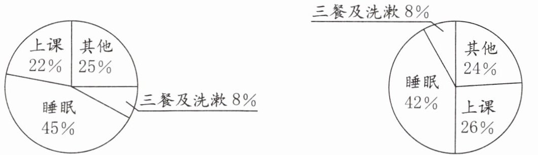 答:三年级学生上课时间比六年级学生少,睡眠时间比六年级学生多,