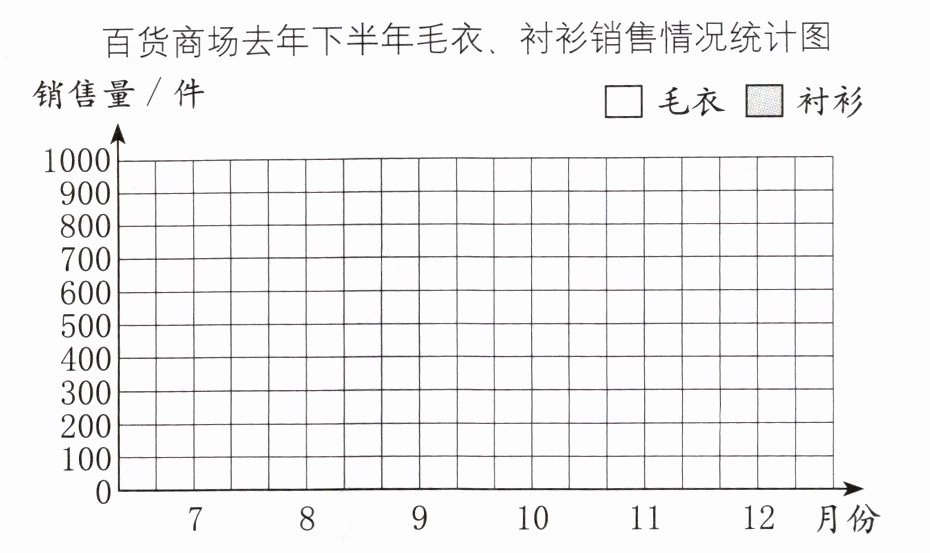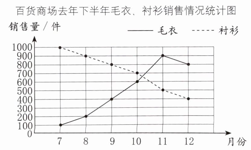 2. 下面是百货商场去年下半年毛衣、衬衫销售情况统计图。