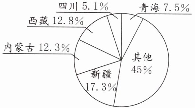 答:新疆、西藏、内蒙古、青海、四川是我国陆地面积最大的五个省,其中新疆陆地面积最大,四川陆地面积最小,其他地区的陆地面积占我国陆地总面积的45.1%。