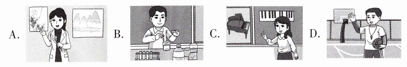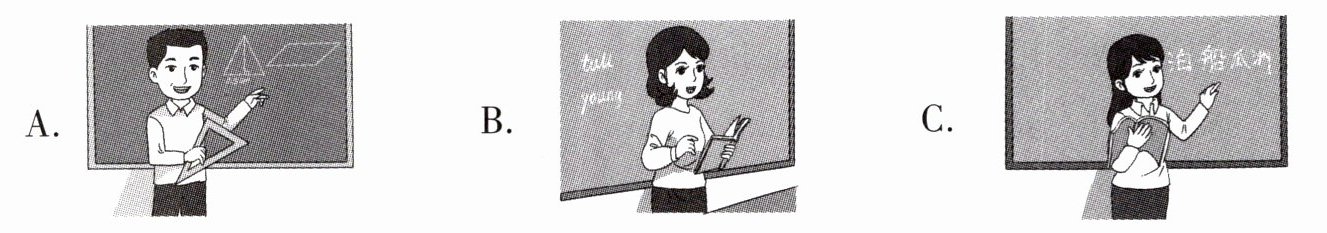 二、Read and choose. 放学后,同学们在谈论自己的老师。请你读一读,选出与下列对话相符的图片。