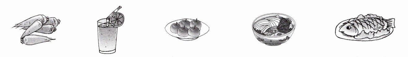 一、Listen and number. 在主题班会上,同学们就“健康饮食”这一主题纷纷发表了自己的看法。请你听一听,用数字1—5给下列图片排序吧。