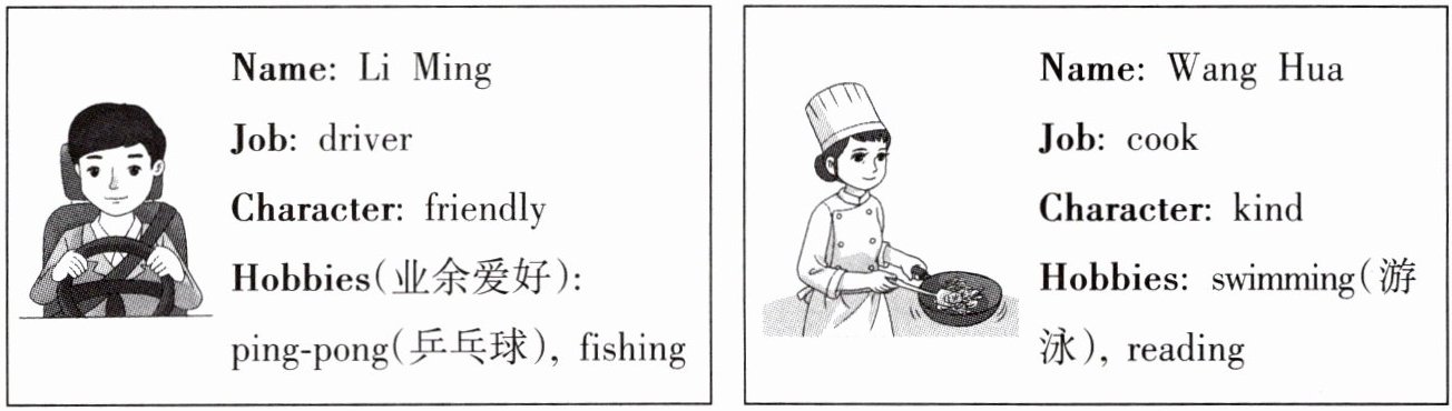 Job: cookCharacter: kindHobbies: swimming(游泳), reading |