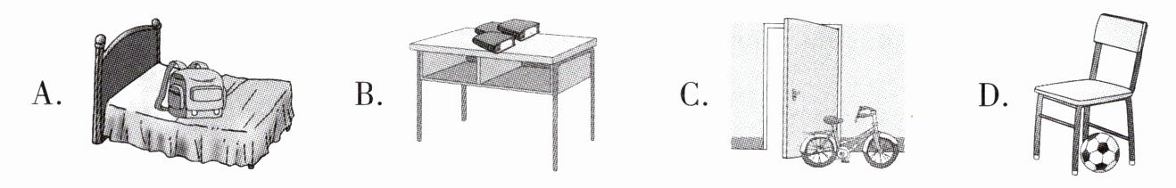 一、Listen and tick. Jack邀请朋友Linda到他家做客。他正在向她介绍自己的卧室。请你听一听,根据所听内容,在相应的图片下面画“√”。