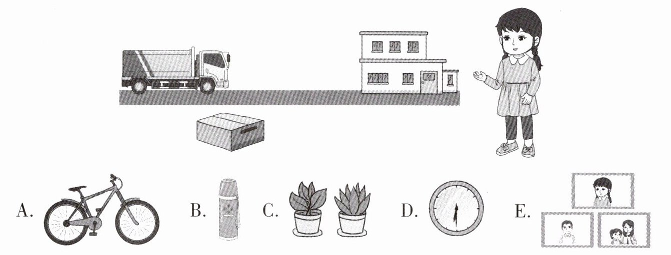 二、Look and choose. Linda为新家搬来了很多东西。她打包的箱子中装着不同的物品。你能猜出来箱子里面的物品吗?请你看一看,选一选吧。