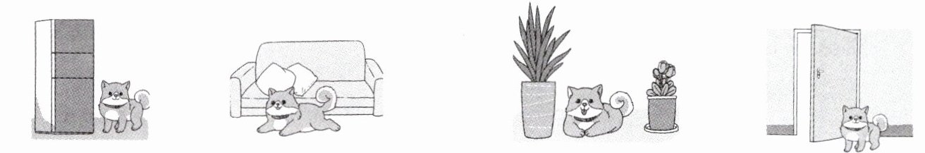 1. behind 2. in front of 3. on 4. between 5. above 6. beside