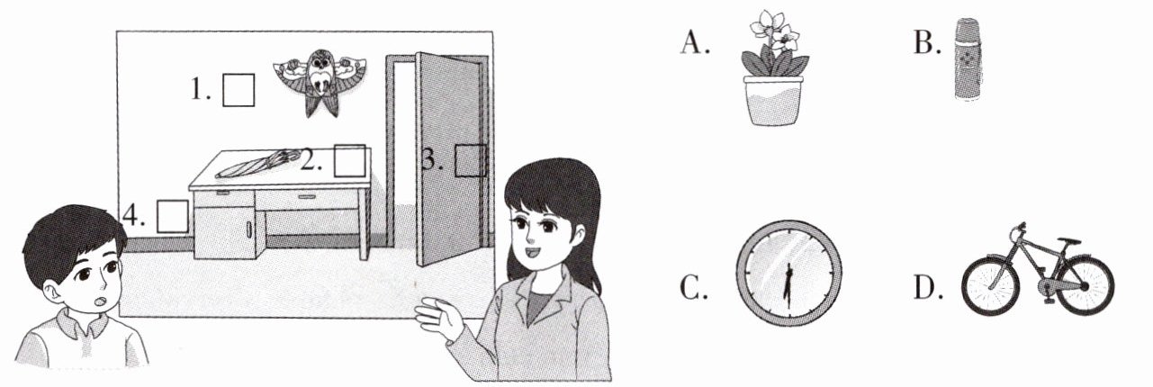 一、Listen and choose. Tom很马虎,他总是找不到自己的东西。他妈妈经常帮他找东西。请你听一听,将下列物品的序号填写在相应的方框中。